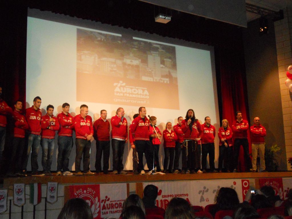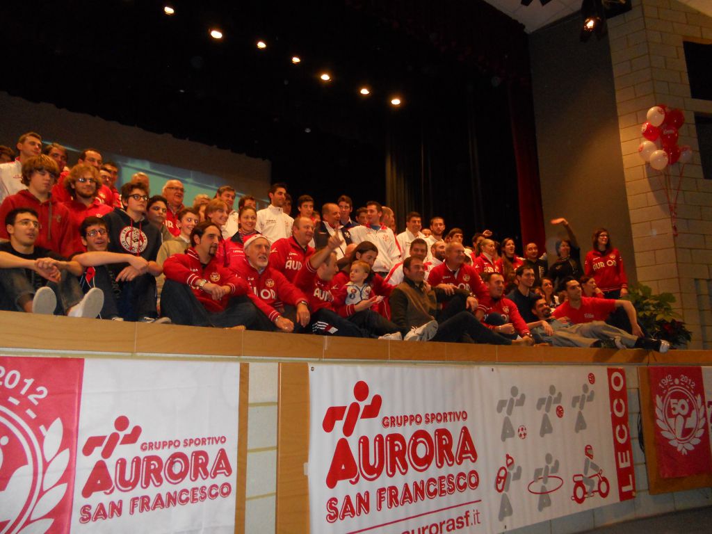 Ricco pomeriggio di festa per l’Aurora San Francesco, gruppo sportivo di Lecco che nel 2012 ha festeggiato i suoi primi 50 anni di attività al servizio dei ragazzi; presso il Cenacolo Francescano, infatti, si è svolto questo pomeriggio il cosiddetto “Natale Aurora”, il tradizionale momento di scambio degli auguri natalizi tra atleti, dirigenti e genitori.