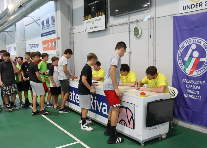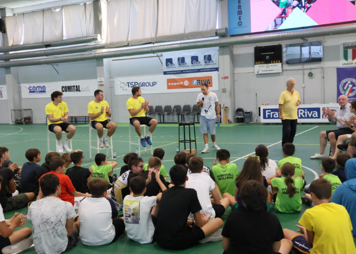 MOLTENO – Oltre sessanta bambini e ragazzi hanno partecipato all’evento del 29 agosto, che ha visto la partecipazione di tre giocatori della Nazionale italiana in vista dei prossimi Mondiali di pallamano, previsti per gennaio 2025 in Danimarca, Norvegia e Croazia. Giacomo Savini, Alessio Moretti e Gianluca Dapiran hanno entusiasmato i giovani moltenesi, che hanno dimostrato interesse rivolgendosi ai giocatori con diverse domande.