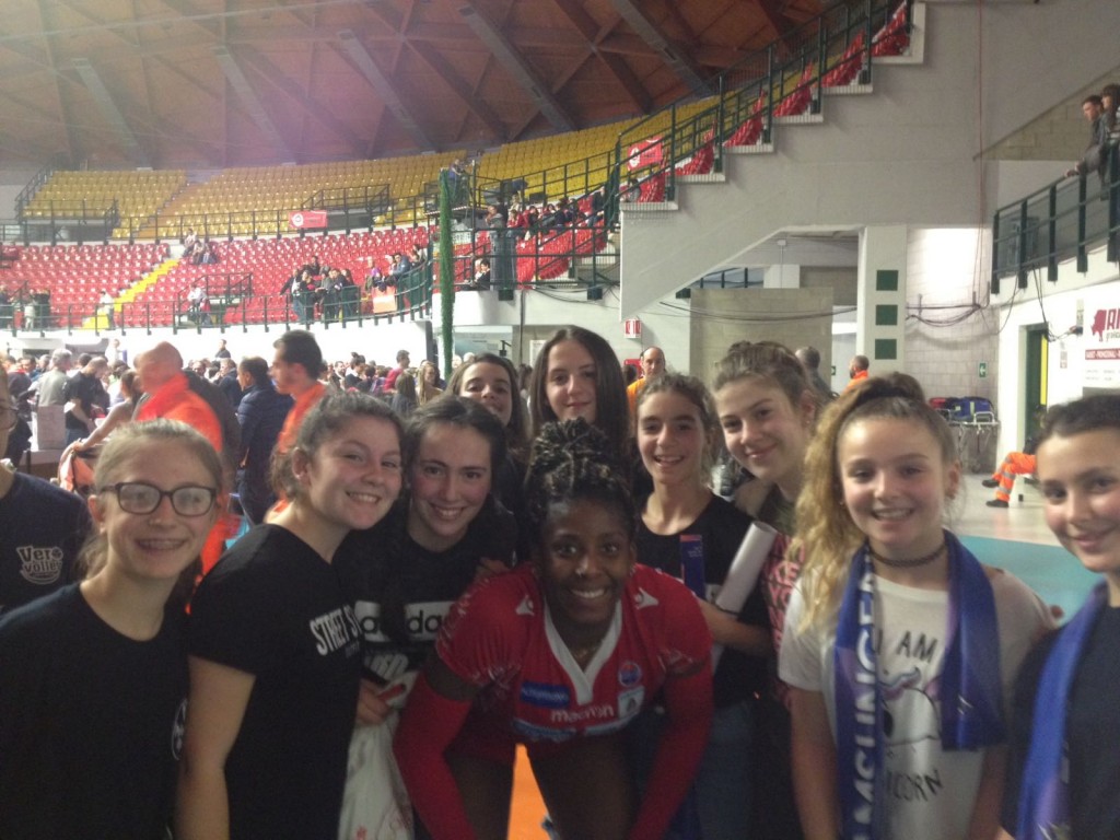 Al termine della partita, le olginatesi hanno incontrato Miriam Sylla, l’atleta di Valgreghentino classe 1995 punto di forza della squadra bergamasca e della nazionale italiana, che ha giocato nelle giovanili della Pallavolo Olginate. Come al solito Miriam si è concessa volentieri alla sue giovani tifose firmando autografi e posando per foto ricordo.