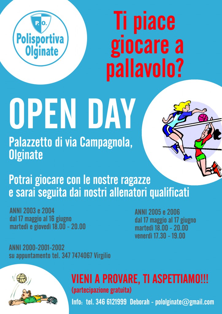 Da martedì 17 maggio a venerdì 17 giugno presso il palazzetto comunale di via Campagnola si terranno diversi Open Day con partecipazione gratuita rivolti alle ragazze nate tra il 2000 e il 2006 che vogliono avvicinarsi alla pallavolo.