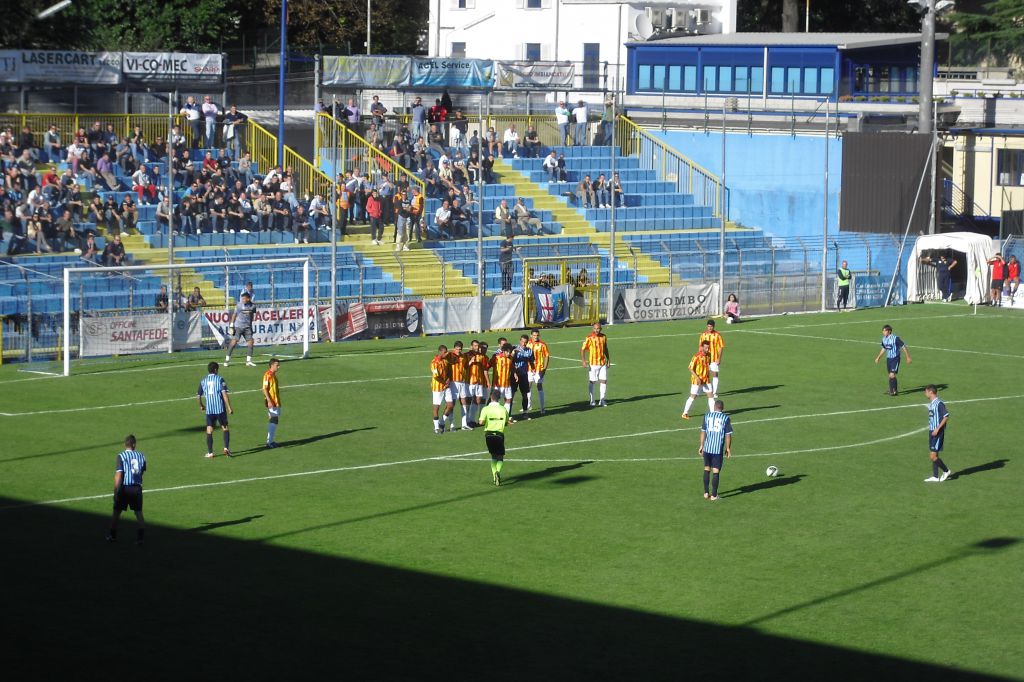 Per più di un’ora prestazione imbarazzante, con i blucelesti in svantaggio 0-2 già al termine del primo tempo a causa delle reti di Falomi e Boldrini. Decisive le punizioni di Fabbro a inizio ripresa e di Rebecchi a tempo scaduto per rimediare il terzo pareggio stagionale in una partita giocata male dai blucelesti, senza grinta, carattere e con gravi errori tecnici individuali.