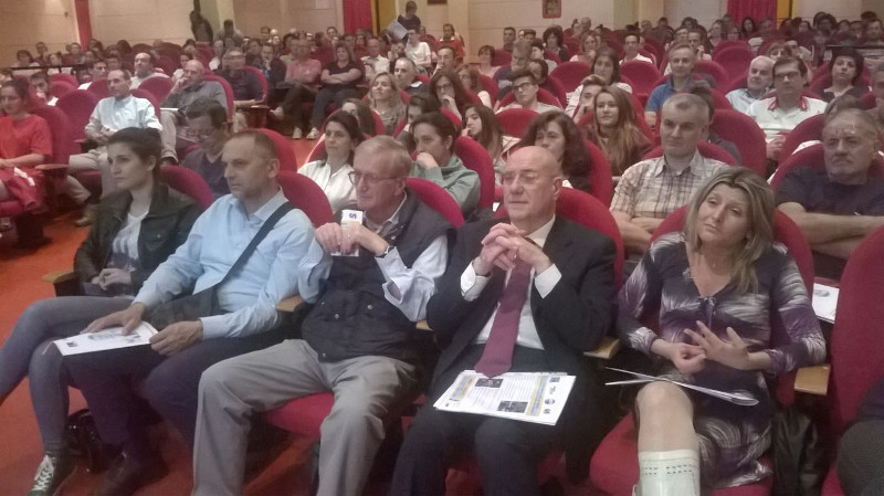 In apertura Roberto Moioli, direttore commerciale del CAB Polidiagnostico Barzanò, Angelo Todeschini, presidente della Fipav Lecco, e Carlo Isacchi, presidente del Csi di Lecco, hanno spiegato il senso della serata, moderata dal giornalista Samuele Biffi, che ha visto la partecipazione di quasi 300 persone.