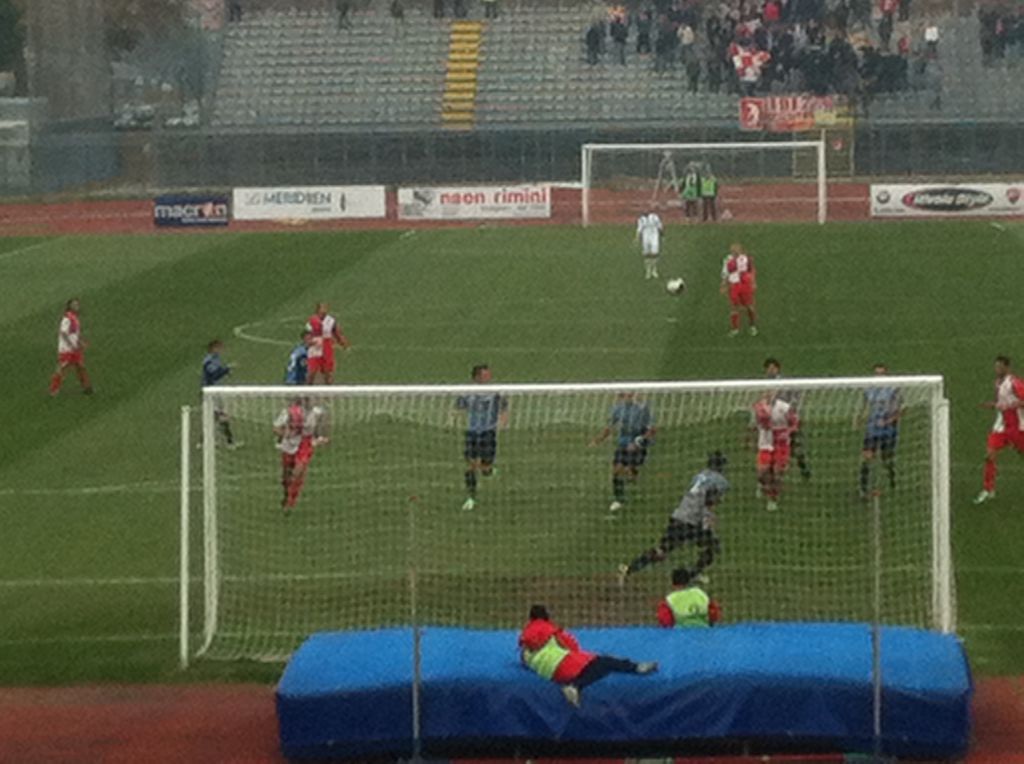 39′ Errore di Tabbiani che non innesca il contropiede del Lecco, ne approfitta il Rimini. Fallo di Padoin che viene ammonito e punizione per i locali dai 20m.