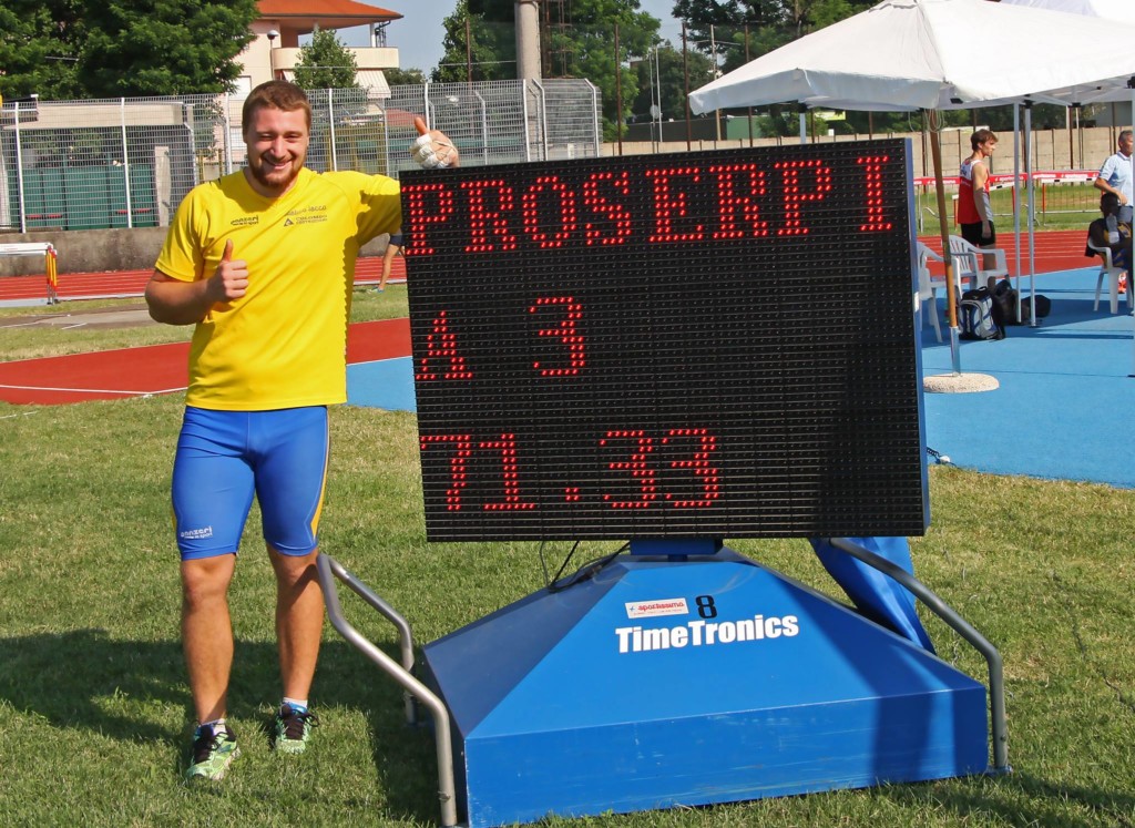La seconda giornata si apre con la bordata nel lancio del martello di Giacomo Proserpio che per la prima volta in carriera supera il muro dei 70m e lo fa andando ben oltre, 68,15m al primo lancio, un nullo al secondo e la bordata vincente al terzo con 71,33m misura che migliora ulteriormente il suo record provinciale Assoluto e lo issa al terzo posto delle graduatorie nazionali preceduto solo dal Marco Lingua con 74,71m e da Simone Falloni con 74,55m, dopo il terzo lancio Giacomo rinuncia ai tre lanci di finale.