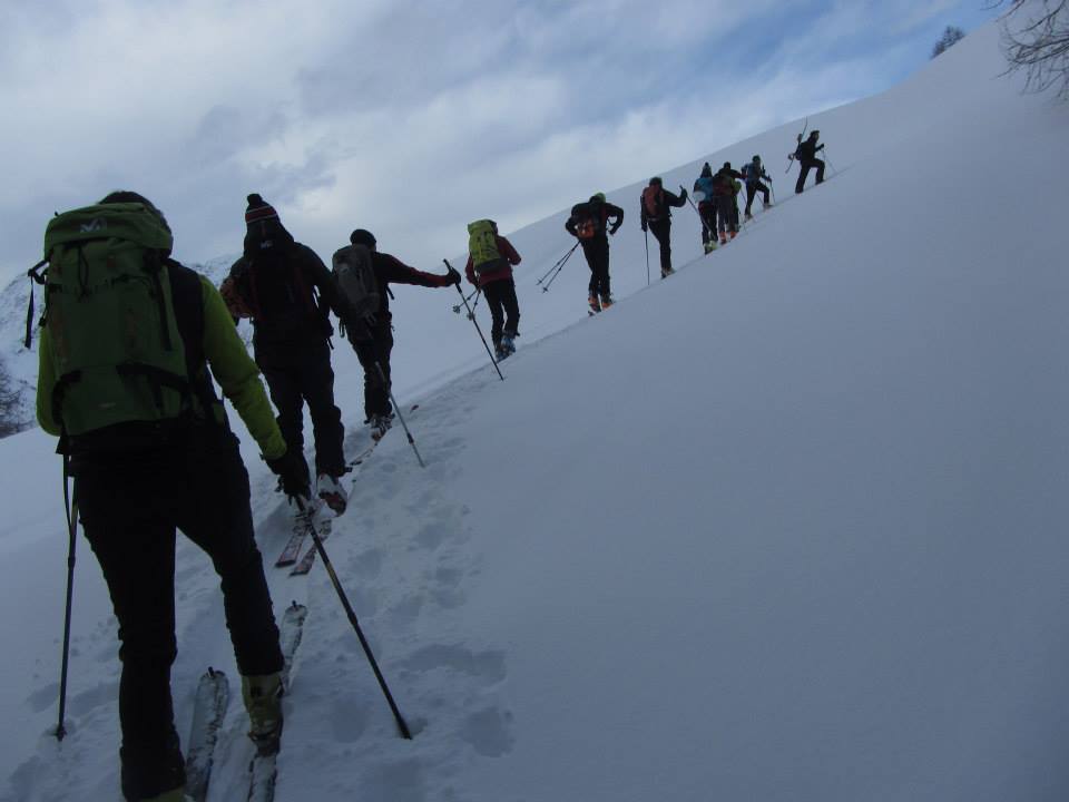 Il corso base sa1 da l’opportunità di vivere la montagna innevata con sci d’alpinismo e snowboard in compagnia di gente esperta. Questo primo livello di corso, rivolto a chi già possiede una buona padronanza della tecnica dello sci, ha lo scopo di fornire agli allievi le nozioni di base indispensabili per effettuare in autonomia, all’interno di un gruppo organizzato da persone più esperte, una gita scialpinistica. Il corso si svolge nei mesi di dicembre e gennaio e si compone di una parte teorica alla quale seguono via via le uscite pratiche in montagna. Saranno appresi nozioni basilari quali neve, valanghe, autosoccorso, preparazione della gita, topografia e orientamento, gestione del rischio, tecnica di salita e tecnica di discesa.