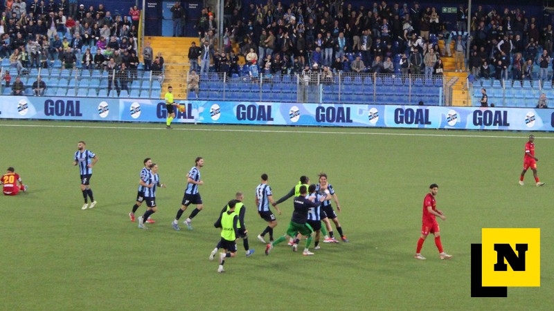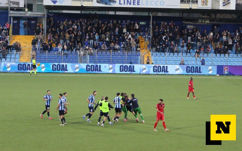 Nella ripresa il Lecco passa al 51′ e si porta in vantaggio con Battistini poi, però, i blucelesti si fanno raggiungere per un’ingenuità su un calcio d’angolo e Borghini sigla il pareggio. Il Lecco non molla, seppur soffrendo, trova il nuovo vantaggio con la rete di Frigerio. Per la salvezza matematica il Lecco che, ora, si trova al 13° posto a quota 43 deve attendere sfida tra Triestina e Padova: se la Triestina non vince i blucelesti sono salvi.