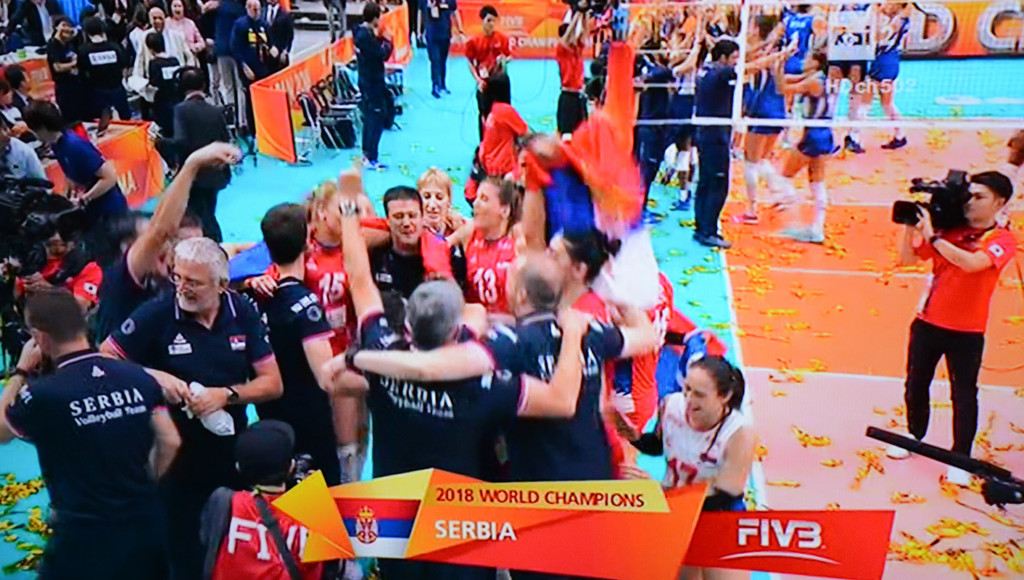 Ultimo set, è ancora testa a testa, la Serbia è sempre più aggressiva con Brankica Mihajlović prima a stoppare a muro l’attacco di Paola Egonu, poi l’affondo in schiacciata su Sylla che non riesce a respingere. Tanti errori nella parte finale per le italiane e al mach point, 14-12, la Serbia conquista il titolo.