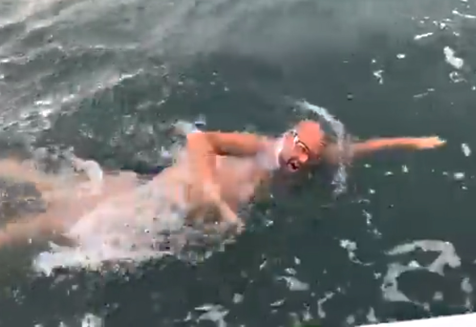 Andrea Oriana nel video dell’inizio della traversata pubblicato nella pagina facebook dedicata alla sua impresa