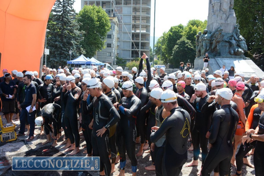 La partenza del Triathlon Olimpico è avvenuta alle 12.30 presso il monumento dei caduti in lungolago, da dove prima gli uomini e due minuti dopo le donne hanno raggiunto a nuoto Valmadrera (località Parè). Una traversata di 1,5 km al termine della quale gli atleti hanno inforcato le bici per affrontare la successiva tranche di gara: l’ascesa fino a Colle Brianza e quindi il ritorno a Galbiate. Un percorso di ben 40 km attraverso i suggestivi scorci della Brianza.