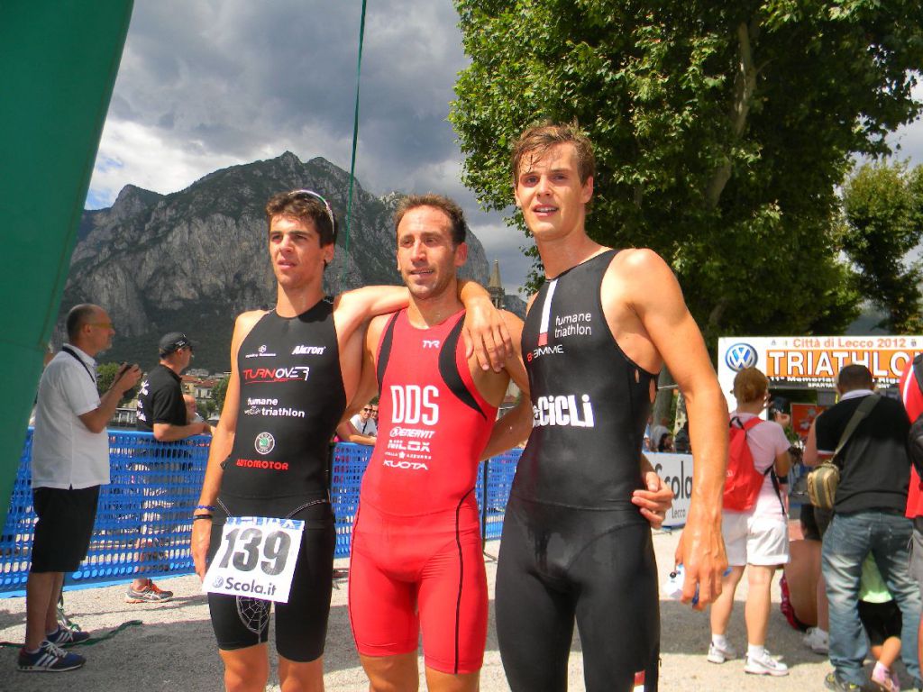 LECCO – Mattia Ceccarelli della Società Sportiva Dds domina l’edizione 2012 del Triathlon Sprint Città di Lecco (Memorial Matteo Rigamonti) competizione valevole per il campionato regionale chiudendo la sua gara in 56’15”. Alle sue spalle Gregory Barnaby (Fumane Triathlon Asd) che ha fermato il crono sui 56’32”, mentre al terzo posto Jacopo Butturini (Fumane Triathlon Asd) 57’20”. (Nella foto sopra da sinistra Butturini, Ceccarelli e Barnaby).