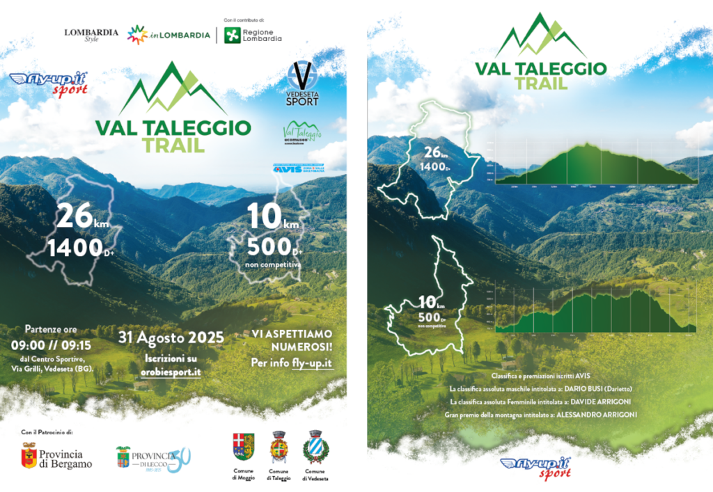 La Val Taleggio Trail si svolgerà con il patrocinio dei Comuni di Vedeseta, Taleggio e Moggio e con il sostegno di Regione Lombardia. Una giornata che vuole unire agonismo, memoria e comunità, riportando la corsa in montagna là dove era nata e dove tanti la attendevano da tempo.