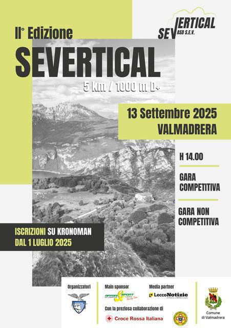 La gara di corsa (competitiva e non competitiva) di 5 km e 1.000 metri di dislivello positivo è in programma sabato 13 settembre (partenza alle ore 14 da piazza monsignor Citterio), mentre le iscrizioni si sono aperte il 1° luglio scorso. Tutte le informazioni sul sito https://rifugiosev.it/gara-severtical.
