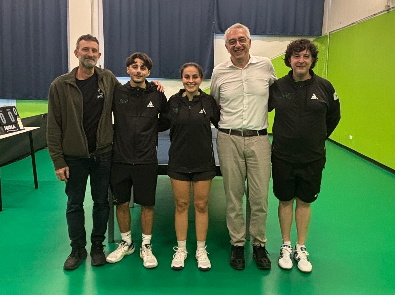 Per la prima partita casalinga della stagione, la palestra di via Casnedi 9 ha accolto una visita speciale: presenti il sindaco di Valmadrera, ing. Cesare Colombo, e Massimo Manzoni, presidente della Consulta Sport del Comune, insieme al direttivo della società, con presidente e vicepresidente del TT Valmadrera. Un’occasione di festa, immortalata anche nelle foto ufficiali insieme agli atleti.