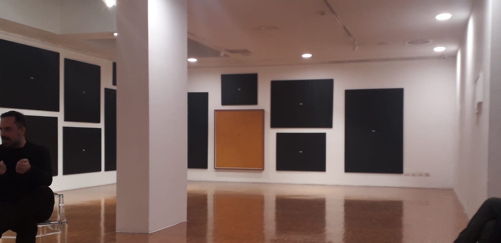 La serata si è rivelata molto coinvolgente per il pubblico presente in sala; Mancini ha raccontato come è nata l’installazione di monocromi neri che hanno sostituito tutti i quadri della collezione del museo ad eccezione di un monocromo giallo di Schifano.