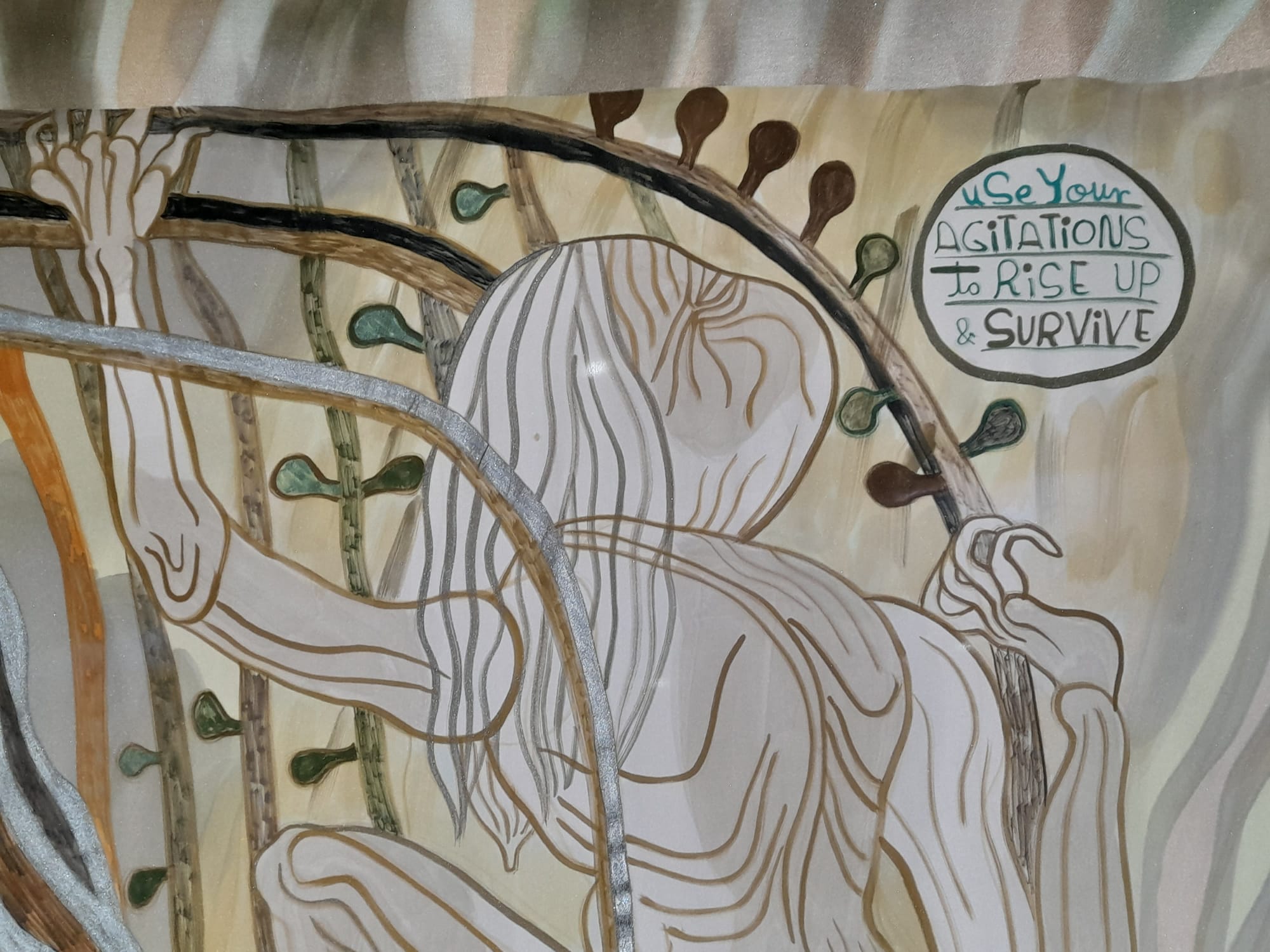E’ questa donna che fa da contraltare a quella di Klimt nell’opera di Talbot che affronta temi importanti come quello della fertilità, dei prodotti farmaceutici, dell’immigrazione, della produzione del cibo, dei carburanti fossili, del capitale, della creatività, attraverso i 12 principi della permacultura contrapposti alle 12 fatiche di Ercole, rielaborate in chiave “non violenta”… ma questa è un’altra storia e se vorrete ve la racconterò in uno dei nostri prossimi appuntamenti.
