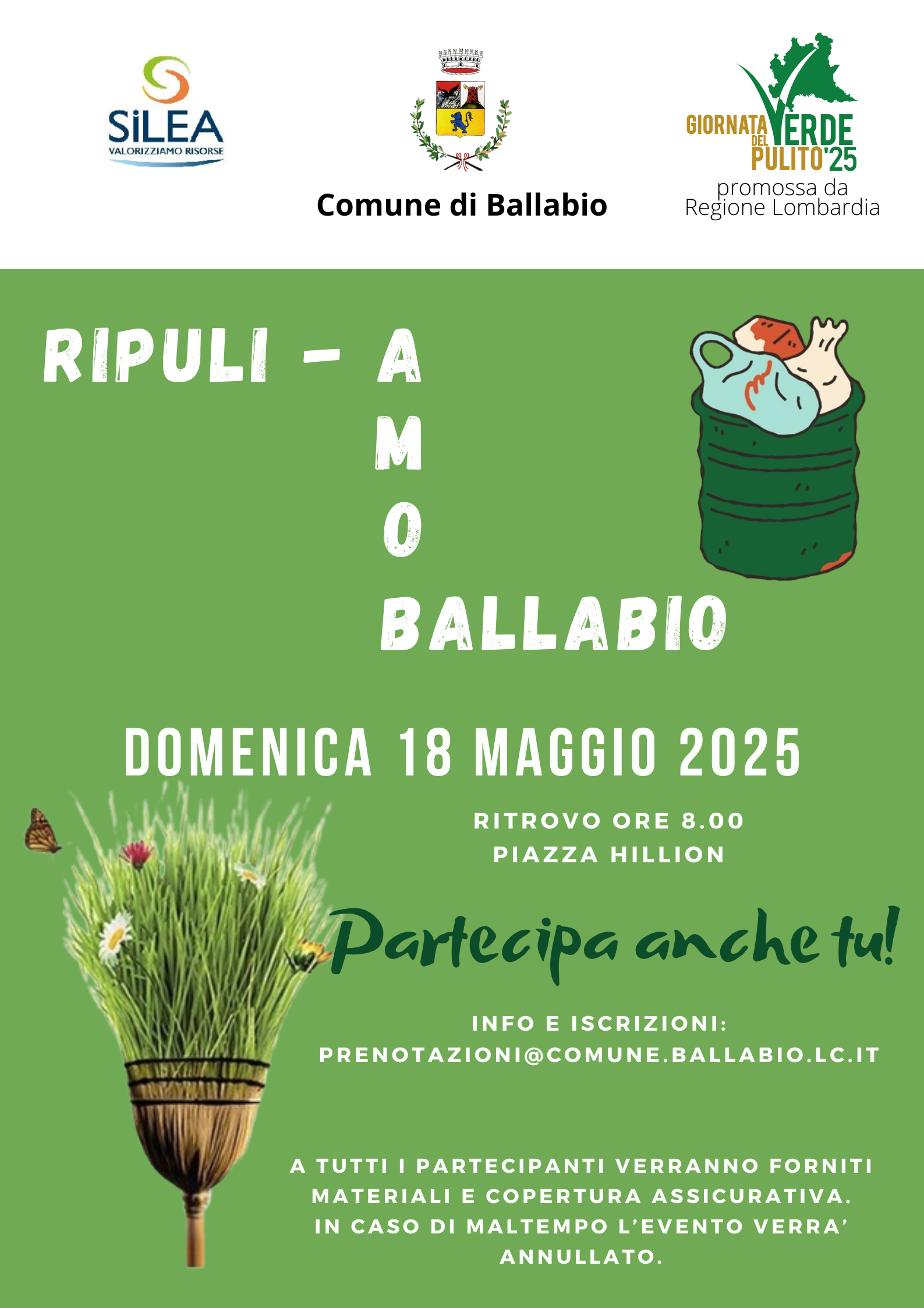 “Tutta la cittadinanza è invitata ad intervenire e può aderire inviando la propria adesione all’indirizzo mail prenotazioni@comune.ballabio.lc.it – dichiarano gli assessori Barbara Crimella e Tino Cereda – si precisa che i partecipanti saranno coperti da assicurazione e verranno dotati di attrezzature per la raccolta dei rifiuti messi a disposizione da Silea Spa”.