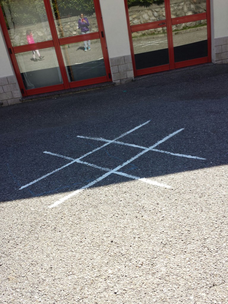 Armati di pennelli e vernice, ed ottenuto il compiaciuto assenso dell’amministrazione comunale, i genitori hanno tracciato in alcuni punti del cortile della scuola il gioco del tris, quello della campana, un cerchio per delimitare l’area del salto con la corda e la grande scacchiera che accompagnerà i bambini nell’apprendimento del gioco della dama e degli scacchi che, quest’anno, vengono insegnati tra le attività pomeridiane del venerdì.