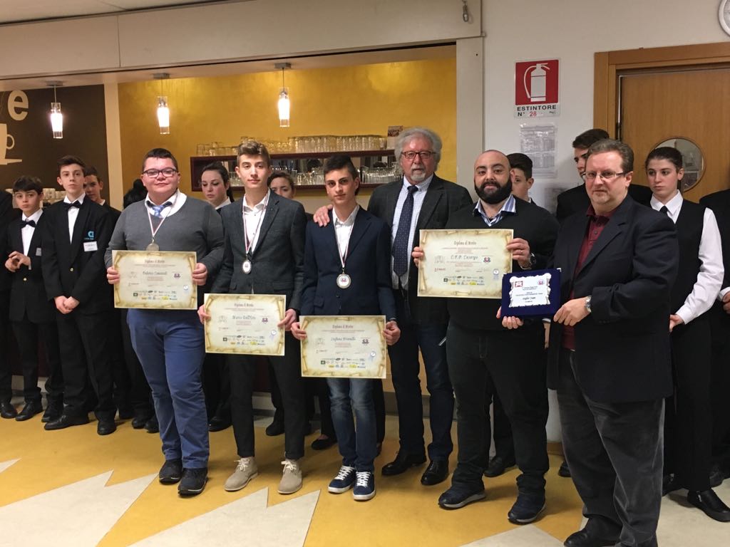 Nel corso della cena il presidente di APAF Nunzio Marcelli, i componenti del Consiglio di Amministrazione Pina Scarpa e Diego Combi e il direttore Marco Cimino hanno premiato gli alunni Federico Comensoli, Marco Dell’Oro e Stefano Noviello che, accompagnati dallo chef Antonio De Marco, hanno ottenuto un prestigioso riconoscimento: miglior team assoluto al 4° concorso di cucina Finger Food per allievi di scuole alberghiere Matteo Restelli, organizzato dall’associazione provinciale Cuochi varesini presso il ristorante Montelago Ternate (Varese).