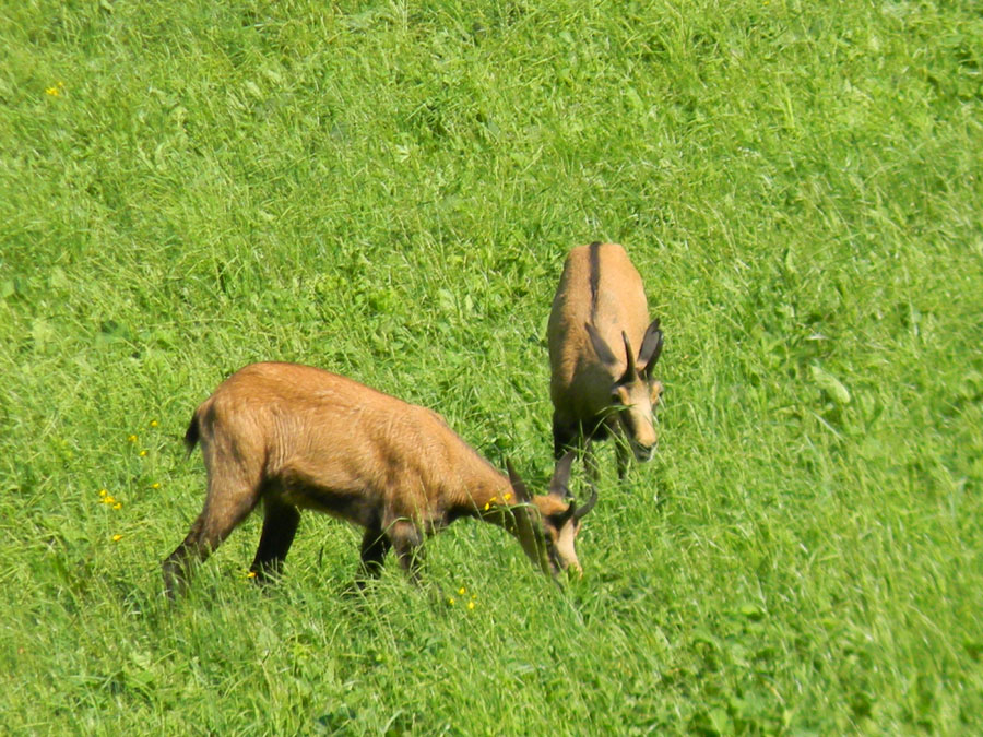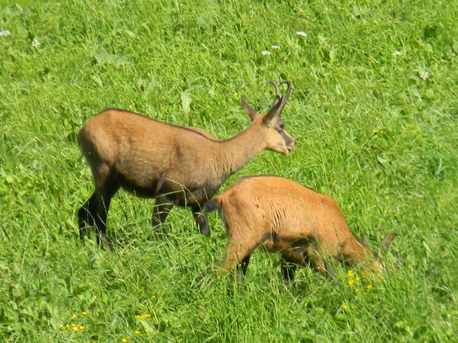 BALLABIO – Non ci sono sempre, solitamente sbucano dal bosco di primo mattino e nel tardo pomeriggio. Agli occhi dei meno esperti quelle sette bestiole che pascolano nei verdi prati di Balisio possono sembrare delle capre, in realtà sono sette bellissimi camosci che attratti dall’erba fresca non disdegnano, mostrando un po’ di sfrontatezza, di lasciare gli irti boschi del monte Due Mani per raggiungere la piana di Balisio e godersi il buon pasto pur essendo a pochi metri dalla strada Provinciale.