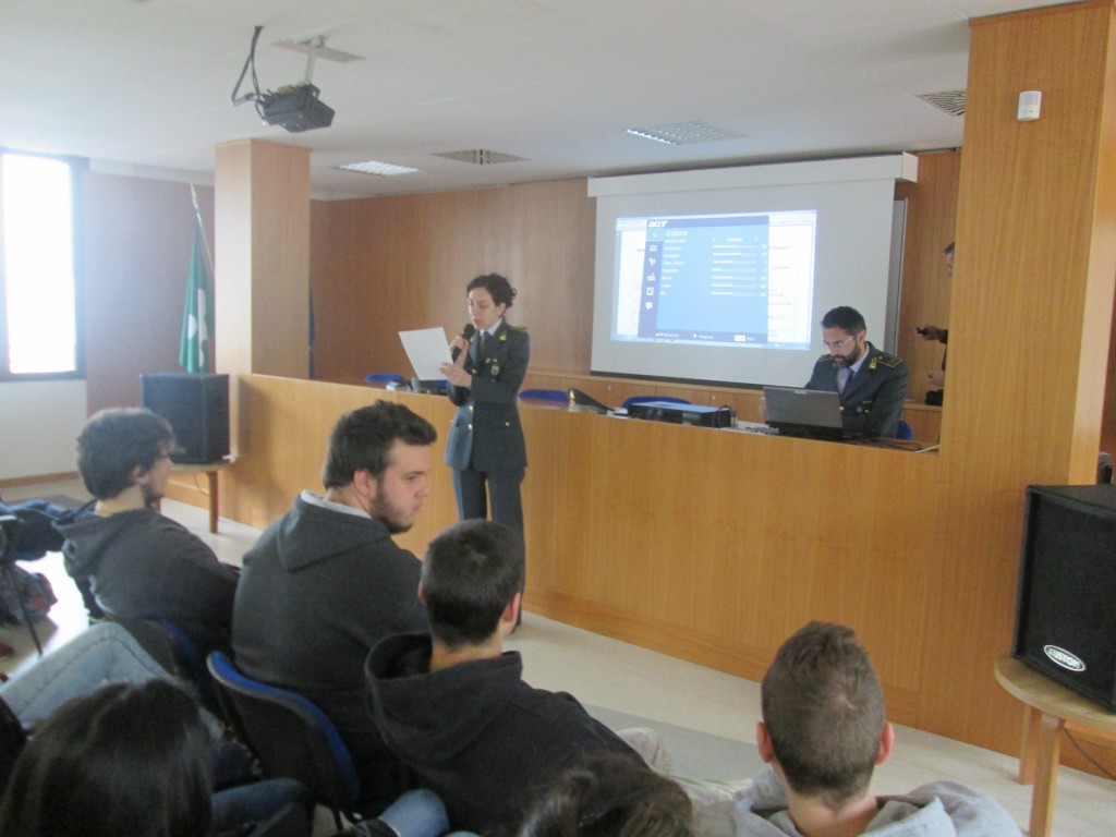 Con il supporto di slide e filmati anche divertenti ma molto significativi, i relatori hanno trattato vari aspetti legati alla legalità, l’economia, il diritto, la frode, l’evasione fiscale, le truffe, la contraffazione, la falsificazione monetaria, i traffici illeciti e di stupefacenti, il ruolo dei social network, gli incauti acquisti, le responsabilità e le competenze dei cittadini, il ruolo e l’impegno della Guardia di Finanza al contrasto della criminalità economica e sociale.