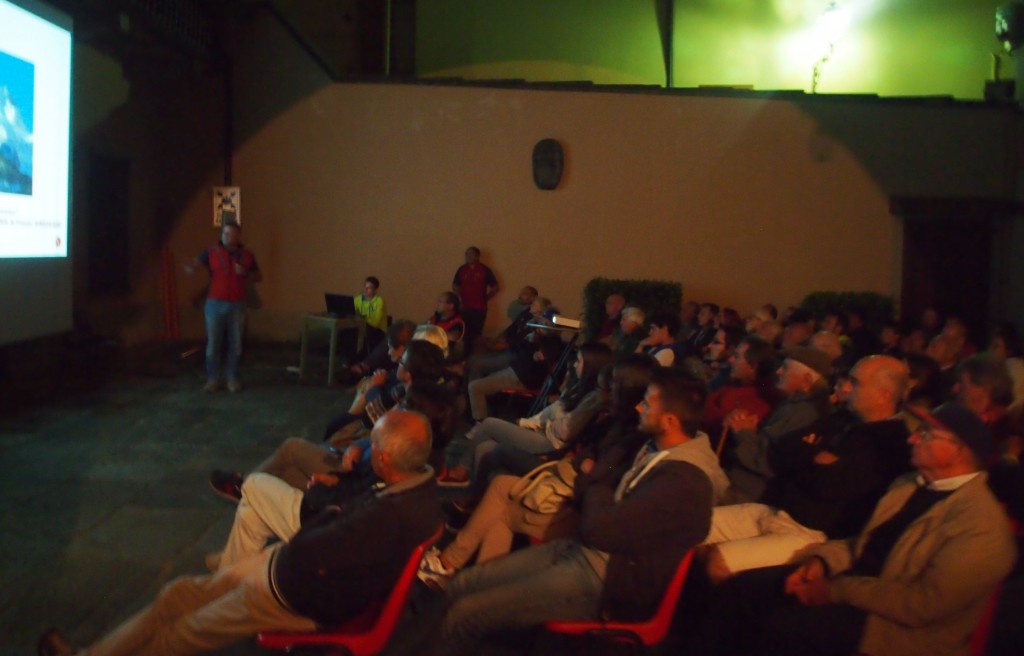 Numerose le persone accorse a riempire totalmente il cortile del Palazzo Comunale. Presenti anche numerosi ospiti che hanno dato valore aggiunto alla serata: Dino Piazza, ragno di Lecco e precursore del Soccorso Alpino, insieme ai suoi compagni Renzo Battiston, Luigino Airoldi e il Professor Eugenio Mira, medico e alpinista.